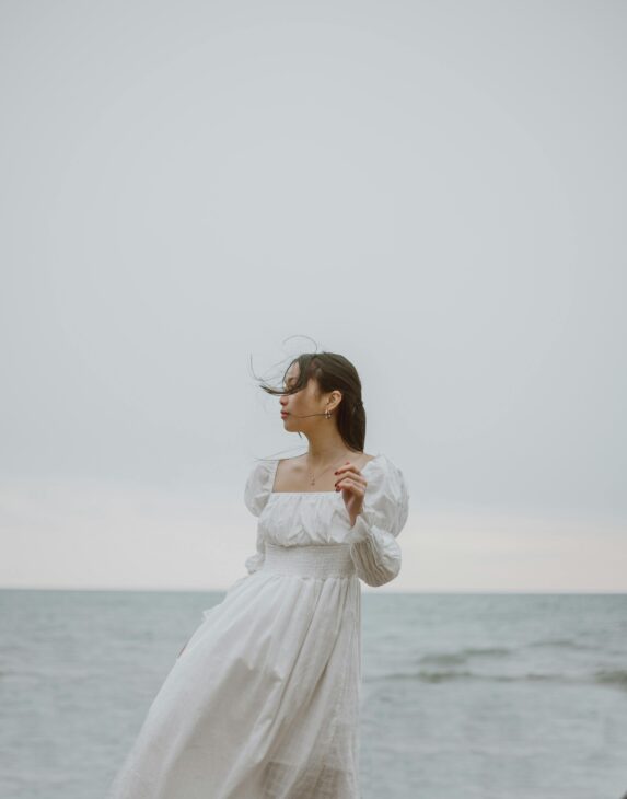 Texture also helps white dresses shift across seasons. In late summer, a gauzy shirt tied at the waist feels light. In winter, a knit vest over a long sleeve top feels warm without adding a heavy coat indoors.