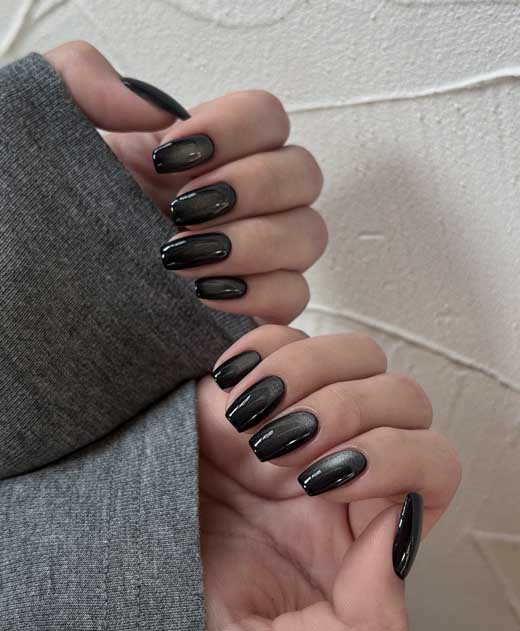 I just mentioned the snake from the dark, witchy Slytherin aesthetics on nails, and another classic ombré combination to evoke the mysterious witch vibe is emerald green with black.