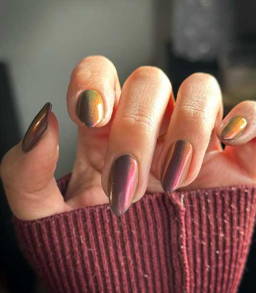 Replinssage gel and 3d chrome nails, fit for a medieval witch queen.