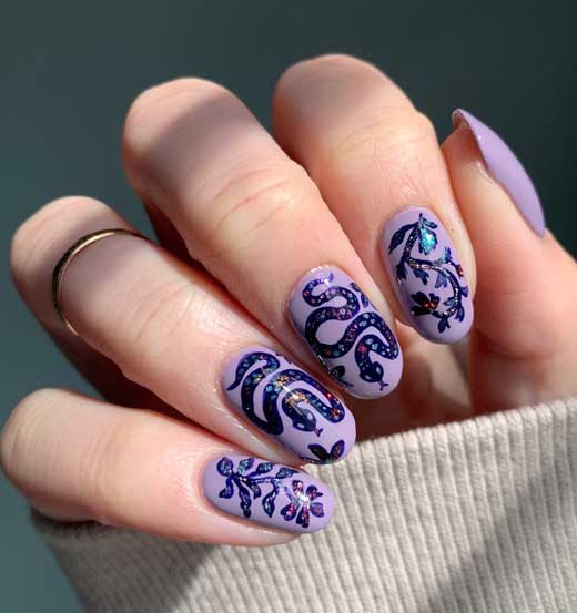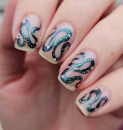 When it comes to choosing nail art that looks witchy but not in a way that resembles Halloween (like witch hat designs), snakes are one of the best options.