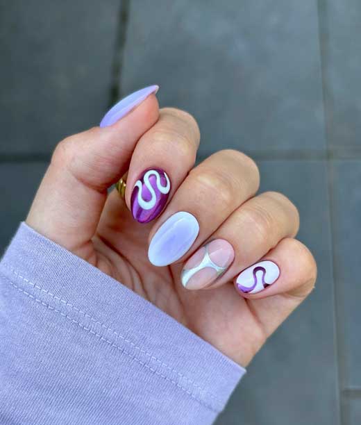 These designs are meant for adult women who love the symbolism of transformation – the mysterious, dark, purple, and celestial tones that capture the essence of witchy aesthetics – and who want to express that energy through their nail art.