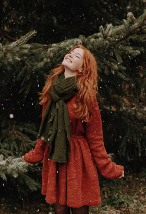 Below I will list 15+ ways we can style a red dress for Christmas, how each fabric and accessory combined conveys a different aesthetic, but yet, all of them still undoubtedly scream cozy, joyful festivity.