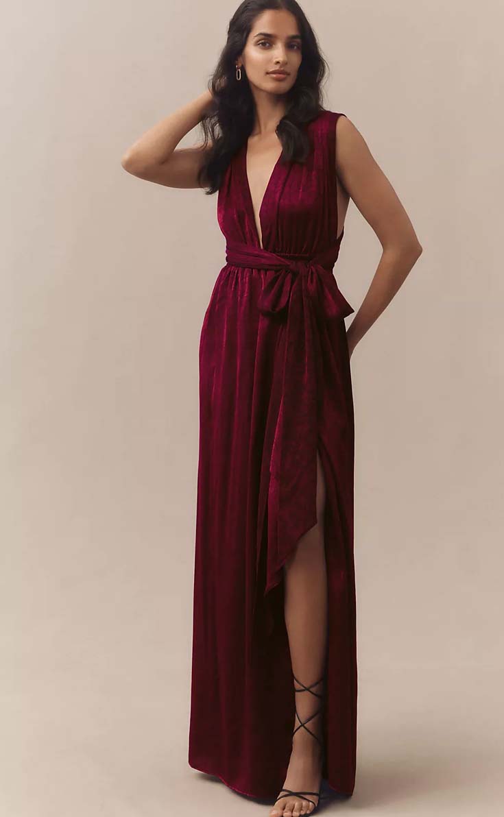 ・GODDESS RED DRESS 2: This burgundy gown channels a softer, more serene side of goddess energy.