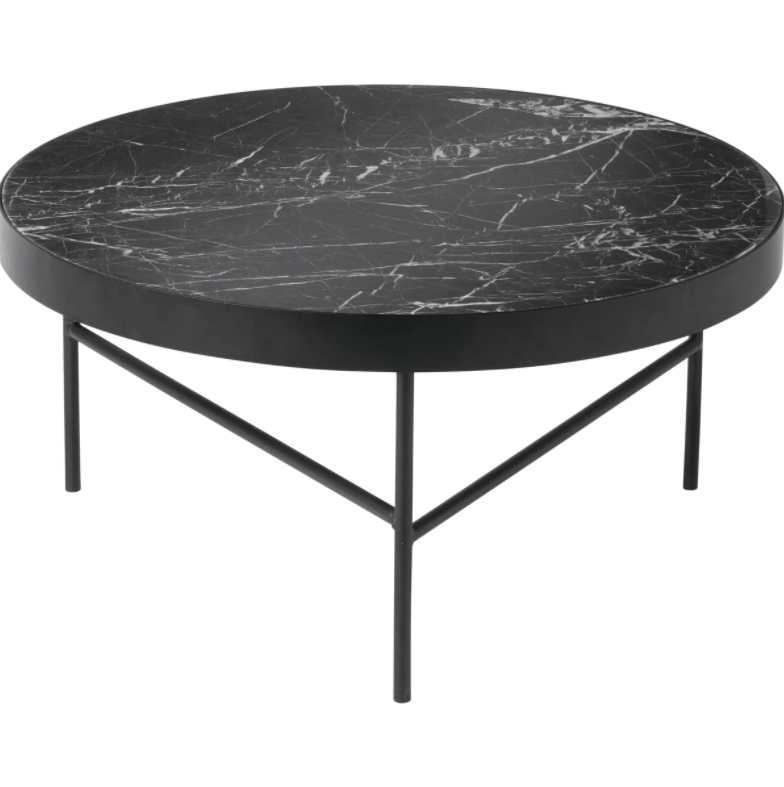 Contemporary Coffee Table With Round White Marble Top & Black Base