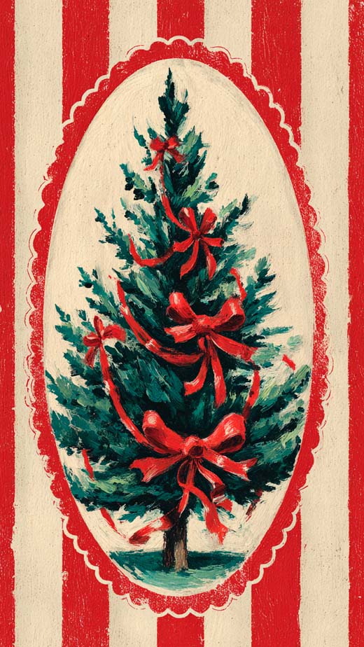 8- A cute and vintage Christmas tree wallpaper where modern elegance meets vintage charm in the details.
