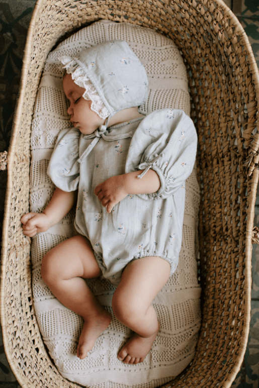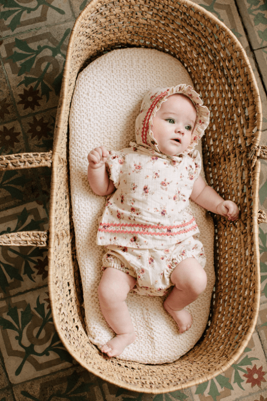 Bebe Organic is a mom-owned British brand. She creates timeless collections of sustainable, organic, and natural baby clothes safe for babies with sensitive skin conditions. Her pieces have a dreamy, romantic, and vintage aesthetic. It’s like traveling back to nostalgic simpler times. You’ll find from sweet bonnets, to artisan bibs, to crochet pieces, delicate flower patterns, and pastel colors clothes. Their website doesn’t sell in the USA, but you can find a lot of their collection on Babyshop and Maisonette. I advise you to browse both stores because they carry different inventories!