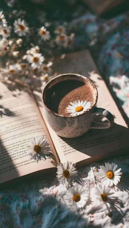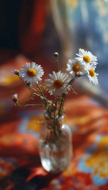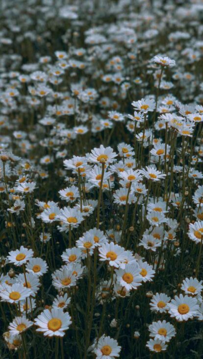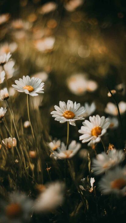 Aesthetic wallpapers with daisies that evoke a mood or lifestyle associated with the symbolism of daisies: outdoorsy, vintage, slow, and delicate.