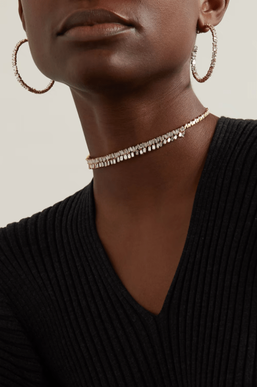 This is the most unique modern choker of all chokers. With 5.35 carat of baguette-cut G VS diamonds placed in a cool design, perfect for women with an effortless minimal-chic aesthetic.