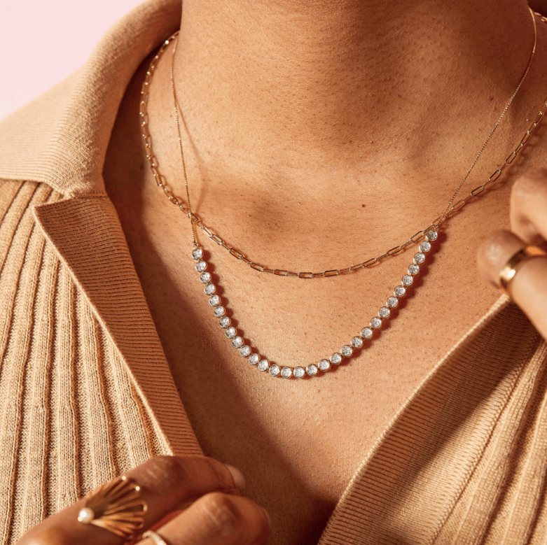 Alongside diamond bracelets and earrings, real diamond necklaces are the most failproof luxury gift and treat. You don’t have to worry about sizing and there are as many styles are there are sparkling stars in the sky. So, in this post, you’ll find the most sought-after diamond necklaces for every aesthetic and credit card limit. Modern chokers, artwork pieces for cool brides, minimal-chic solitaires, dainty hearts, crosses, diamond necklaces with names, initials, and so on.