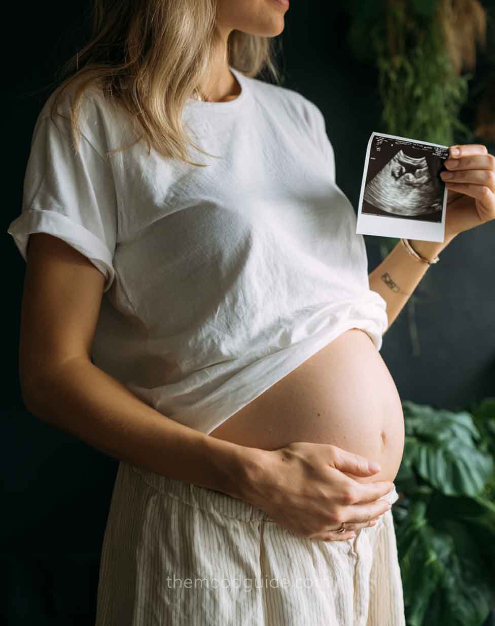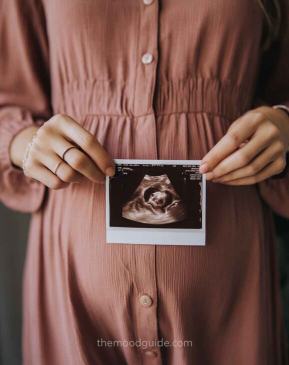 Holding a note or the baby scan.