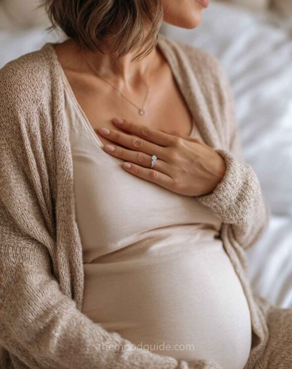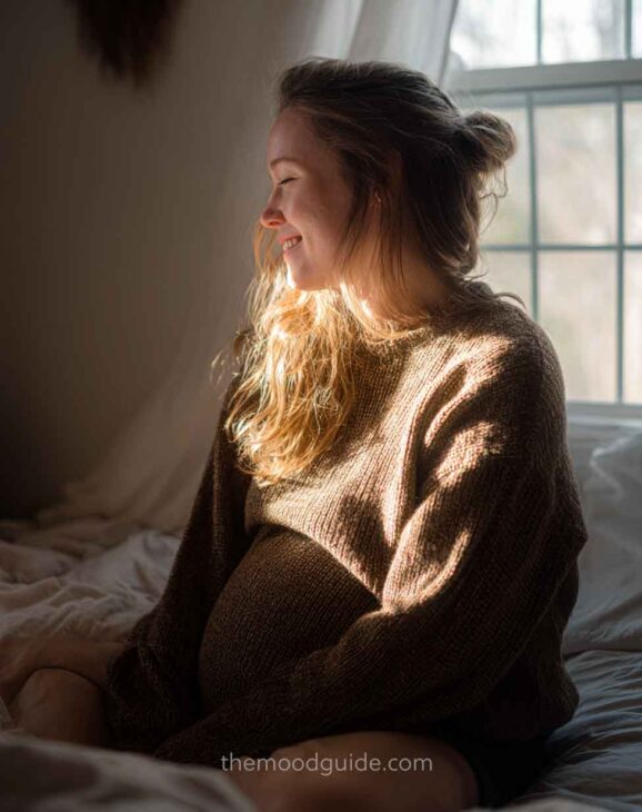 This type of natural maternity photoshoot made at home captures the magic of a moment and the aura of the mother, and feels less artificial than studio photoshoots!