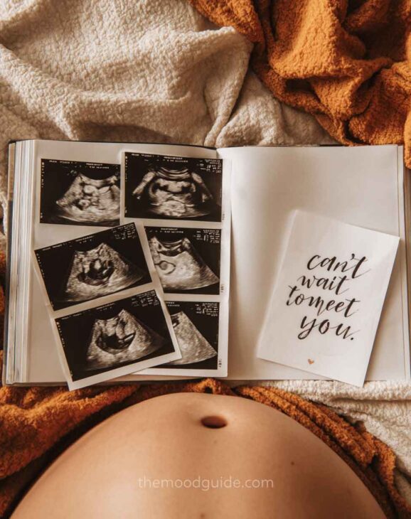 Minimalism, neutral colors for the background and for the outfit, some baby stuff, and a soft filter from your favorite photo editing app, will get you results like the ones below. You also need someone to take the picture for you!