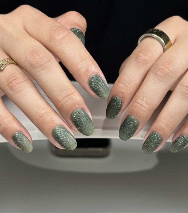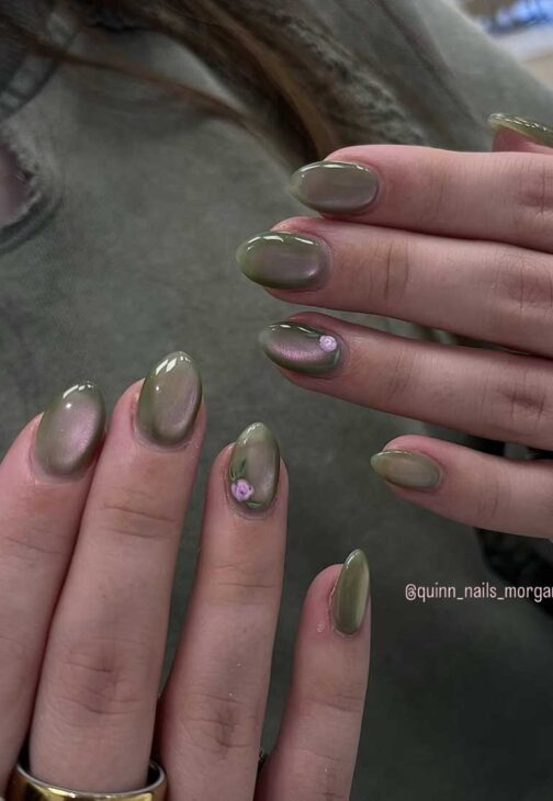 Cat eye nails are still trending, and they’re a big hit on Instagram for Spring nail trends in 2026. The combination of glass, chrome, and sparkly glittery effects with cat eye creates a truly magical manicure.