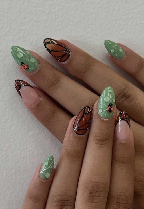 Butterflies and fairies are almost the same, except that fairies are tiny humans. However, their wings are almost always inspired by the gorgeous and delicate wings of butterflies. When painted on nails with other natural elements and a specific color palette, the fairy aesthetic is immediately evoked.
