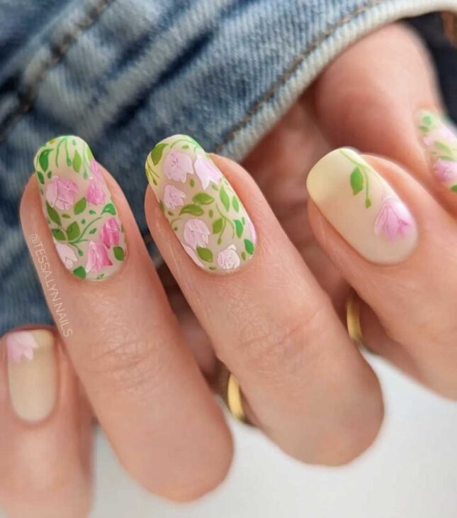 Therefore, the nail designs below are pieces of art that capture this subtle yet captivating mood of the most feminine and mysterious side of nature, particularly the pink flowers and vibrant greens of spring, which exude inherent femininity and enchantment.