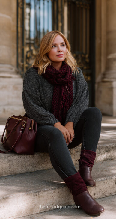 Grey & Burgundy Outfit Ideas for Women