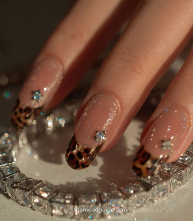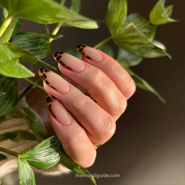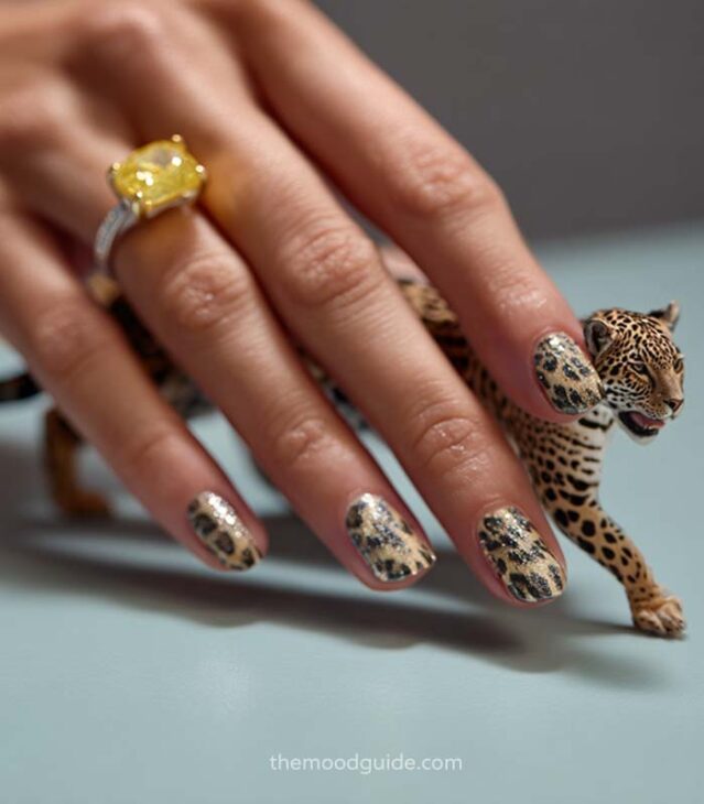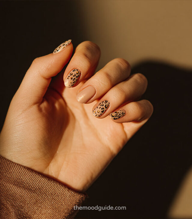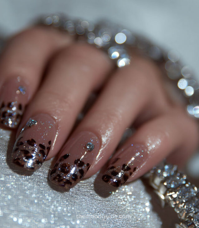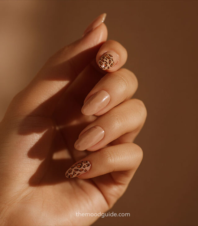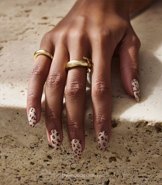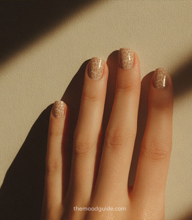 - Soft nude base with subtle leopard accents.