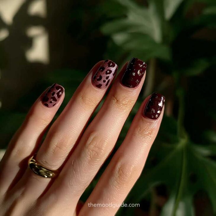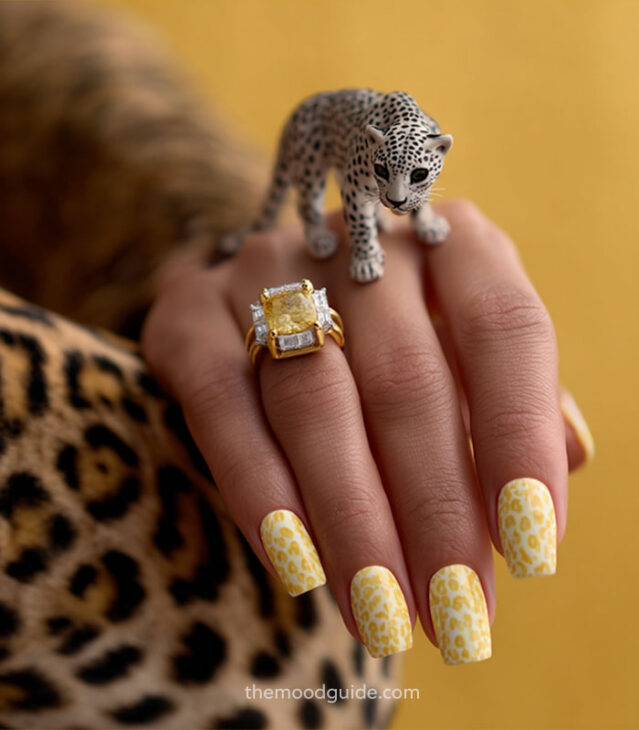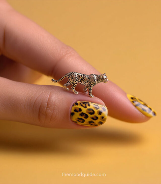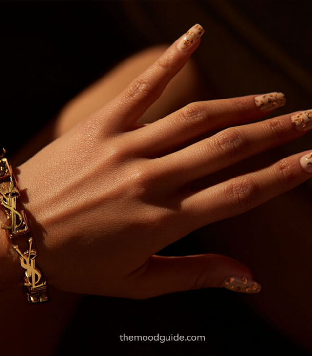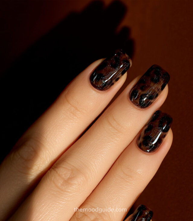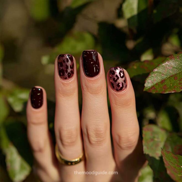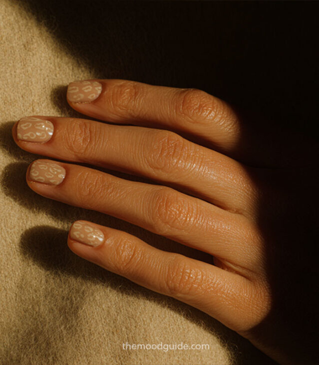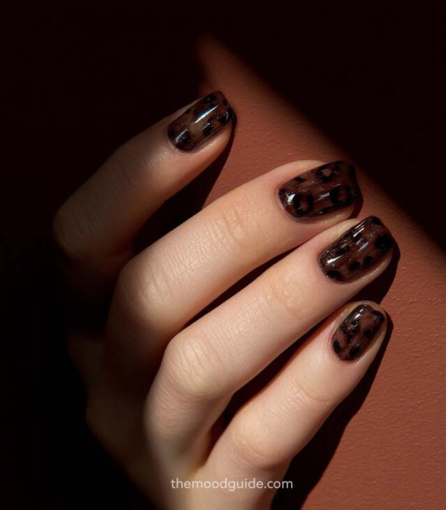 - Soft nude base with subtle leopard accents.