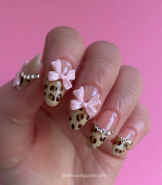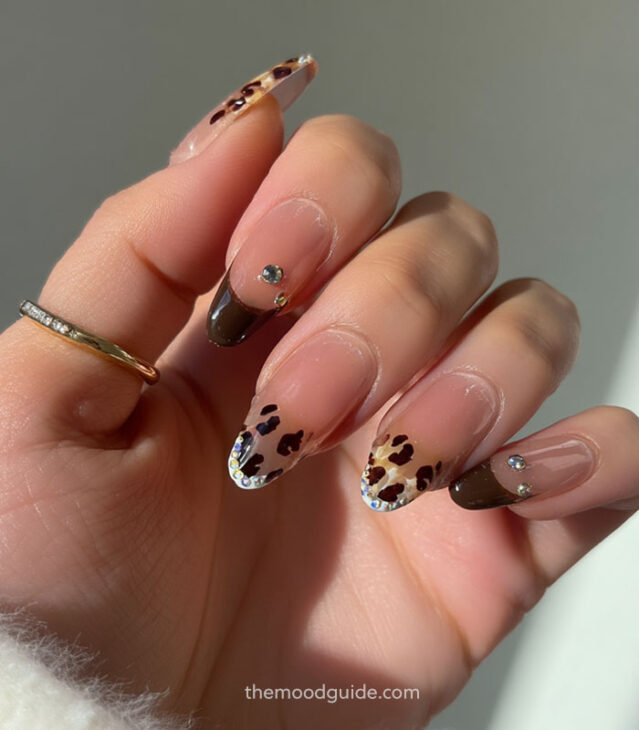 - Leopard print paired with French tips