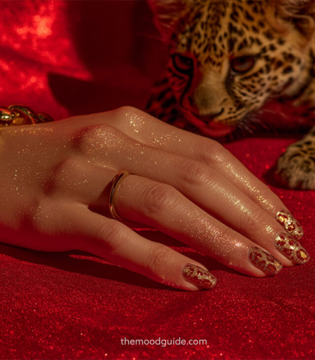 - Leopard paired with gold and red accents for luxury & baddie statement.