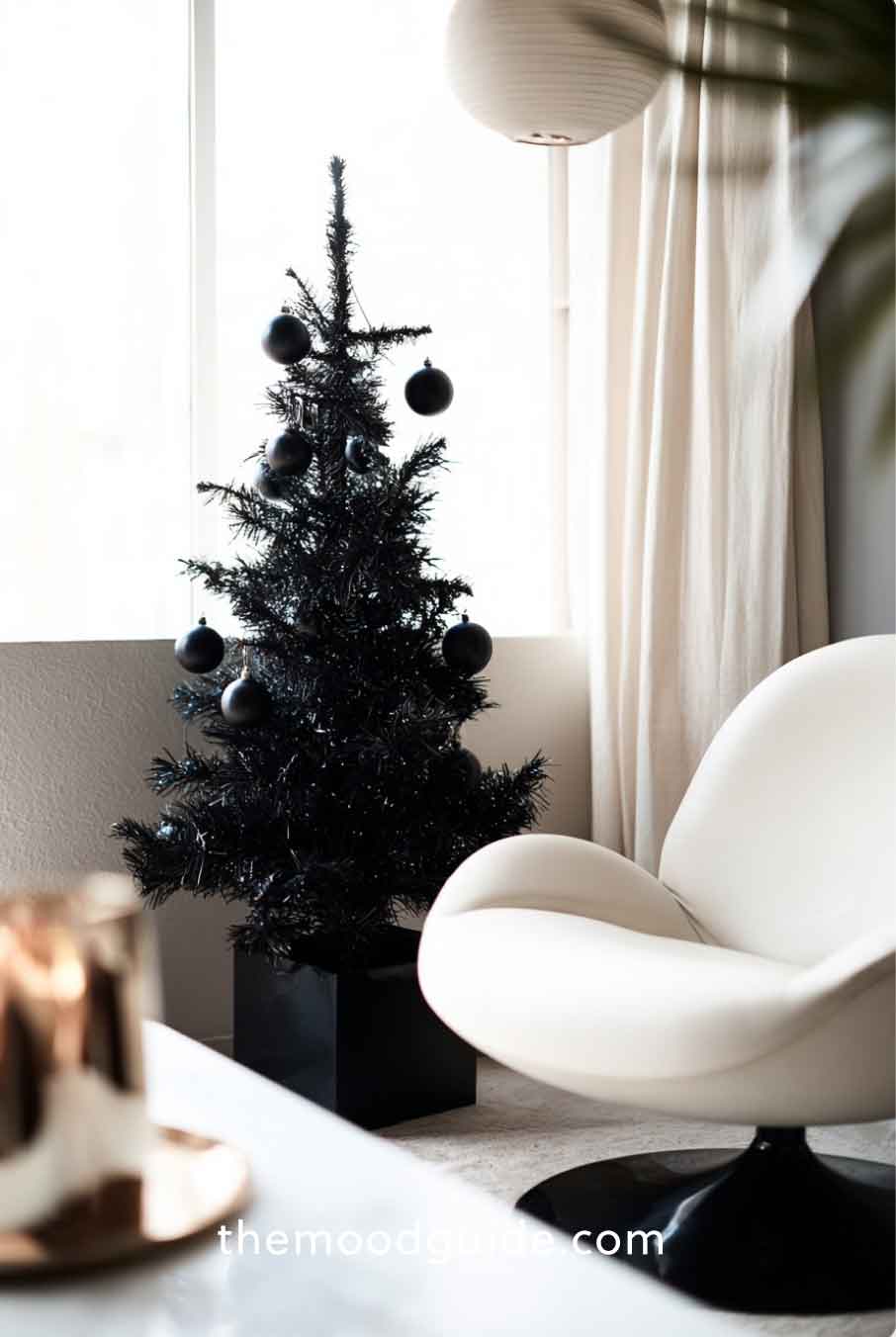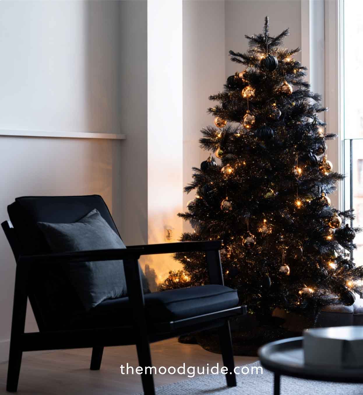 For the ultimate modern chic look, go for an all-black tree with only black ornaments. It is an easy way to create a moody, mysterious, and effortlessly sophisticated Christmas vibe.
