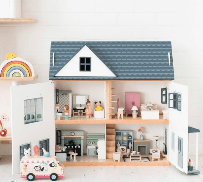 They are gentle for kids and sturdy enough to stand all the abuse with dignity and become an heirloom piece! Also, a dollhouse makes gifting so much easier because there are so many accessories, furniture, cars, and dolls that go with it!