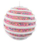 Mix glossy pastel ornaments with candy shapes — lollipops, cupcakes, peppermint swirls, and wrapped bonbons. Glitter and iridescent pieces add that “sugar sparkle” that makes the whole tree glow.
