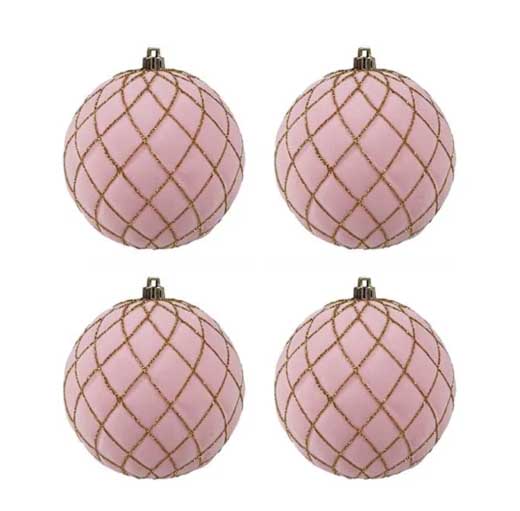 To recreate this delicate look, start with ornaments in different shades of blush and baby pink. Mix matte, pearl, velvet, and plush finishes for softness and femininity.