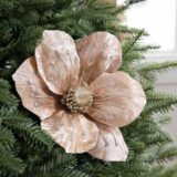 Choose soft satin ribbons or metallic mesh for extra shine. A sequin or faux-fur tree skirt will anchor the look with elegance. To enhance the glamour, wrap a delicate crystal or gold beaded garland around the tree.