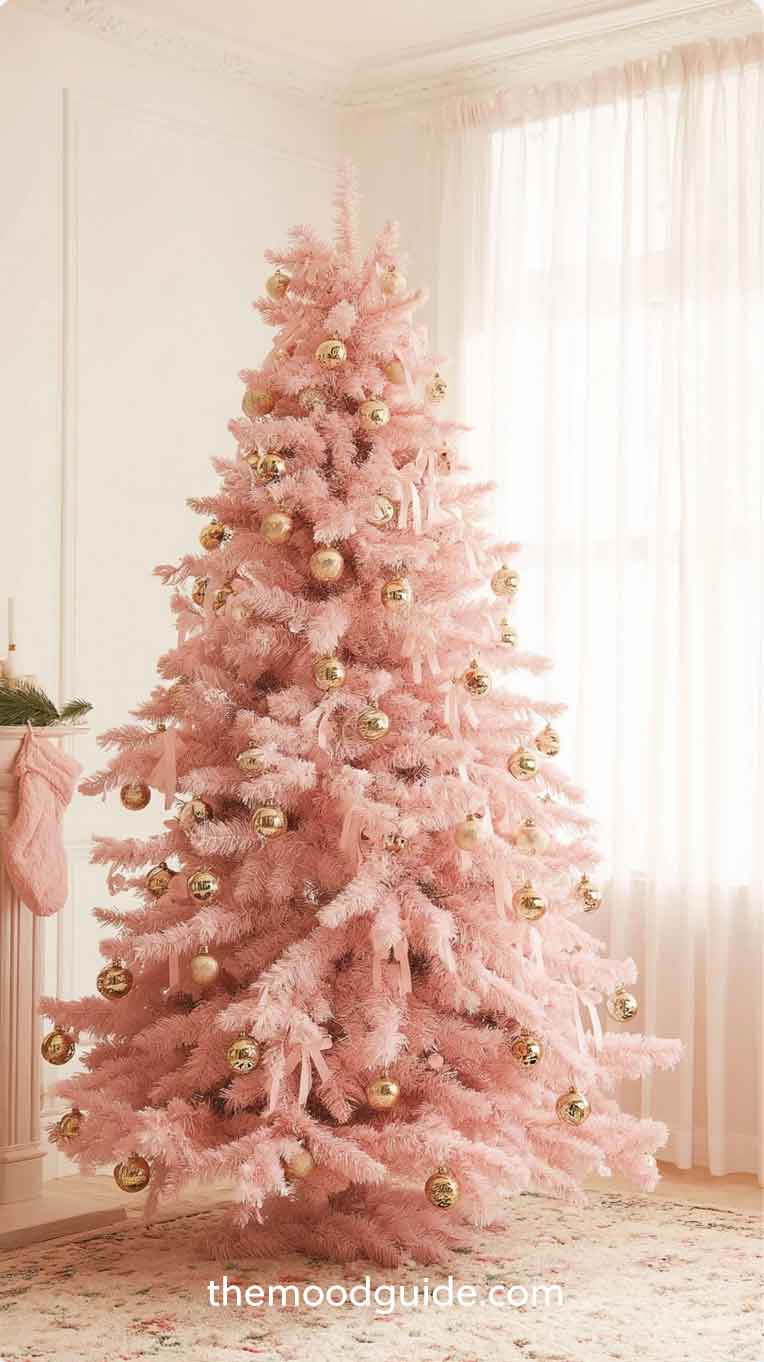 Gold, when combined with anything, adds a touch of refinement and luxury — and when paired with pink, the result is breathtakingly feminine and high-end. A pink and gold Christmas tree evokes the feeling of a Parisian penthouse, an elegant soirée, or a royal celebration.
