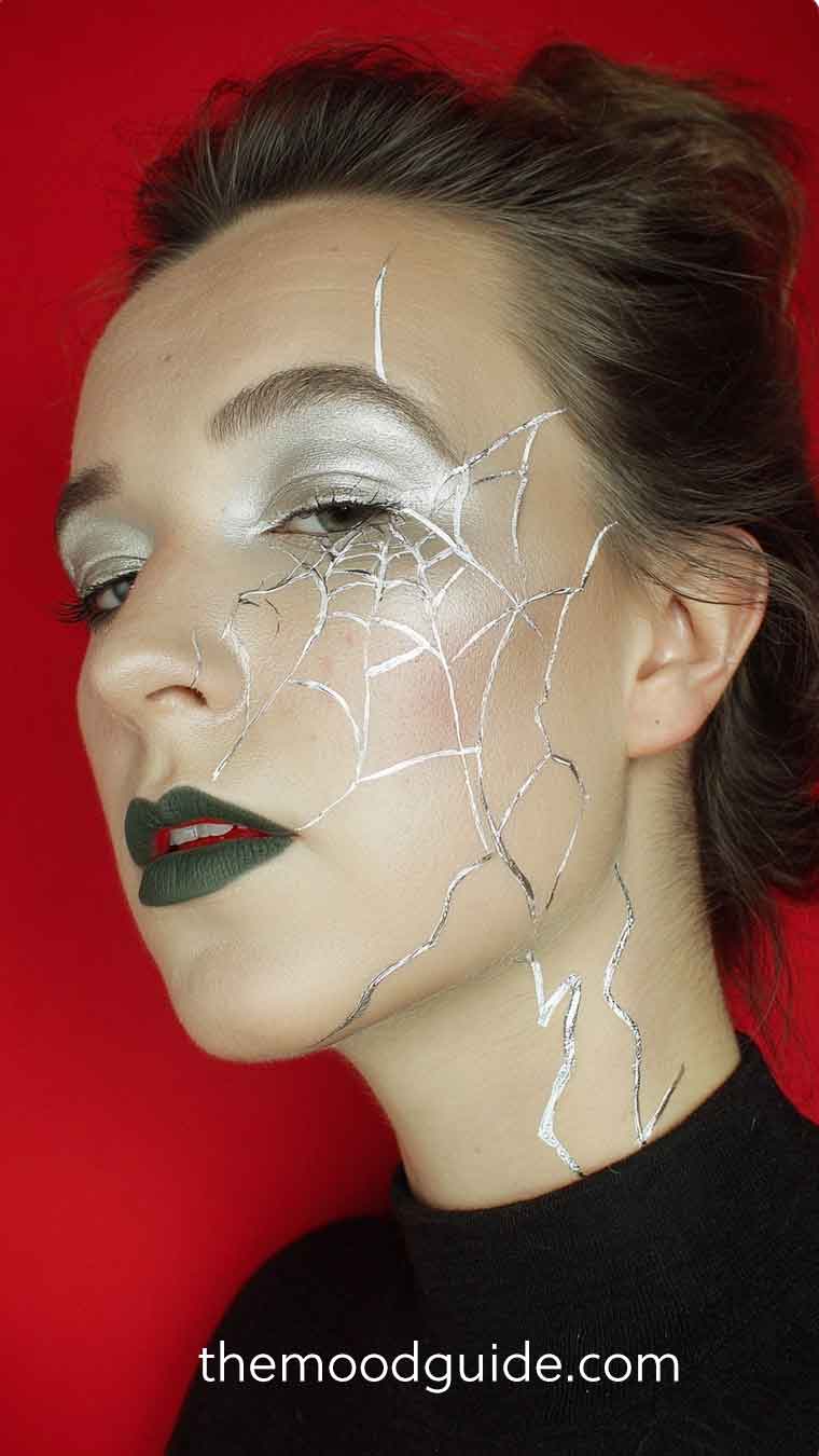 19- All silver spiderweb with an authentic touch of green lipstick.