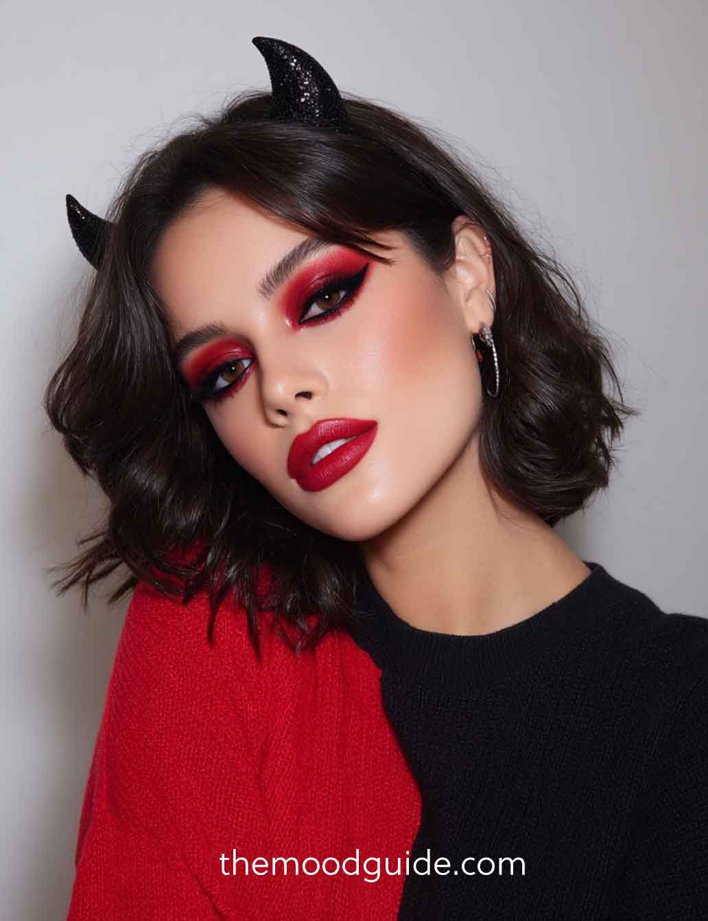 7- Gorgeous and simple for a chic devil makeup. Bright red eyeshadow and marked black eyeliner.