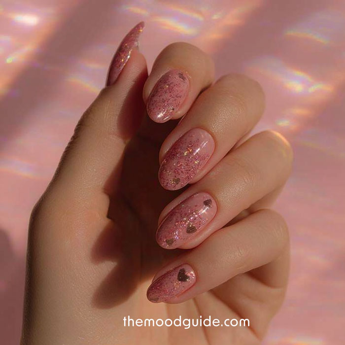 10- Rosé gold glittery with golden hearts.