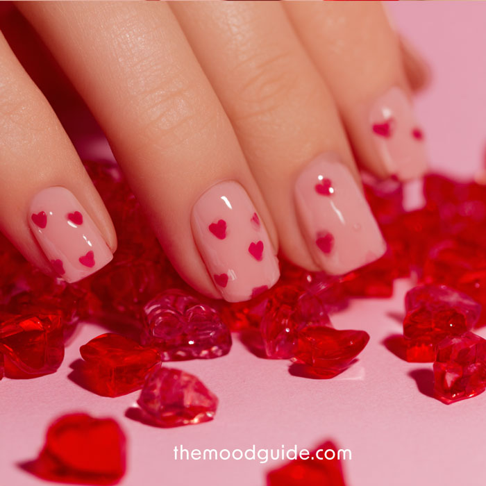 There are also simple press-on nails available for purchase and wearing on Valentine’s Day.