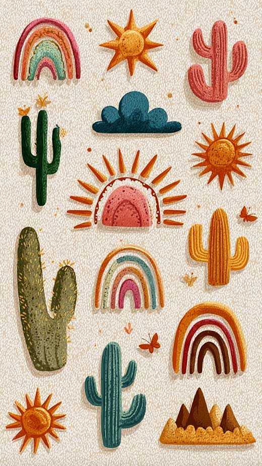Boho sun art for a cute summer pattern. See also Bright & Beautiful Boho Wallpapers for iPhone